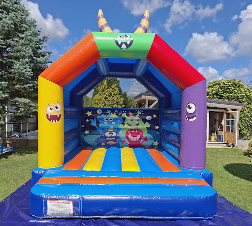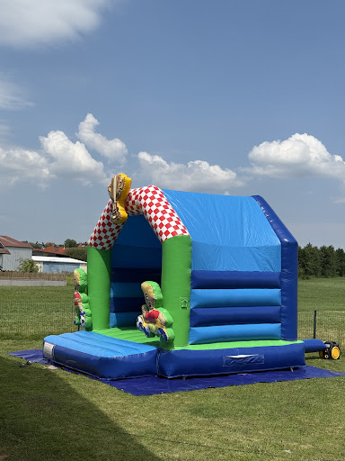 Bitte beachte, dass das Gebläse (nicht enthalten) während der Benutzung ständig laufen muss und ein geringer Luftabgang durch die Löcher notwendig ist, damit die Hüpfburg nicht platzt.