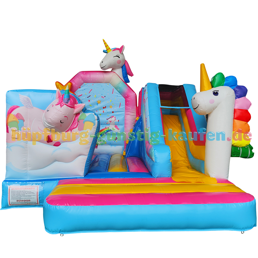 Die Hüpfburg Ritterburg mit Rutsche ist ein Profimodul, welches nach den strengen Richtlinien gemäß der DIN EN 14960 gefertigt und geprüft ist, was bedeutet, dass sie sicher und zuverlässig ist. Damit ist die Hüpfburg Ritterburg mit Rutsche perfekt für den professionellen Verleiheinsatz geeignet. Achte bitte darauf, dass nur Kinder auf der Hüpfburg erlaubt sind, keine Erwachsenen!